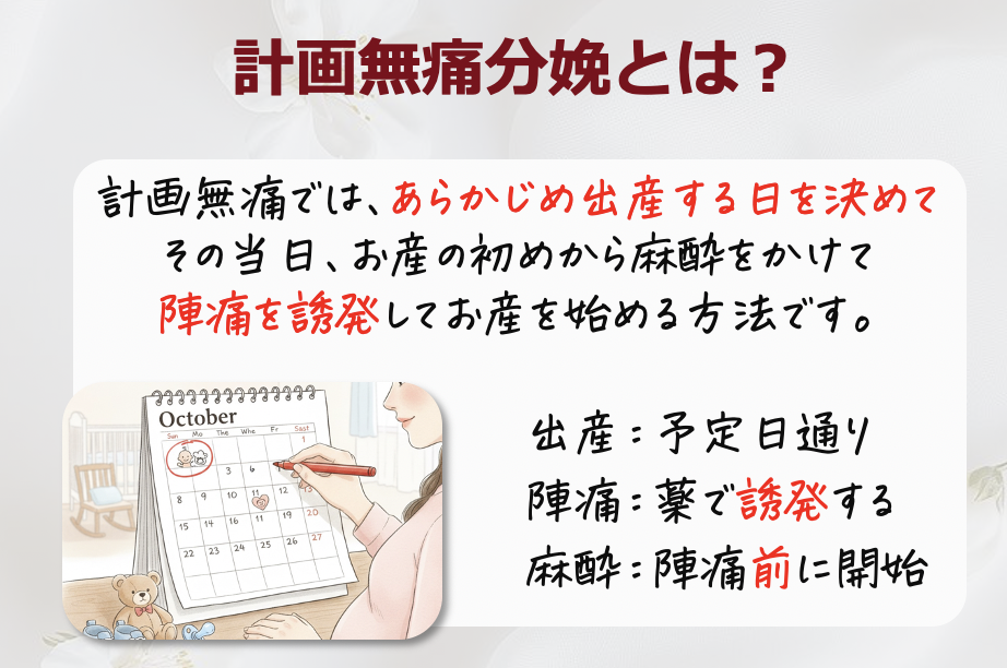 Point:計画無痛分娩では『出産日が決まっている、陣痛は薬で誘発する』